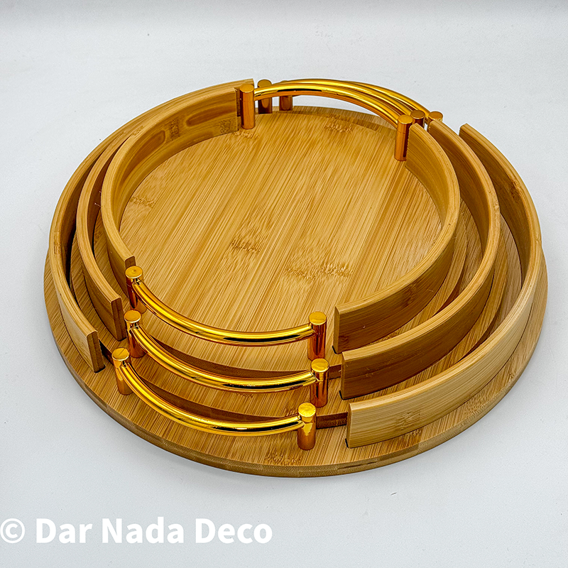Ensemble de plateaux en bambou avec poignées dorées